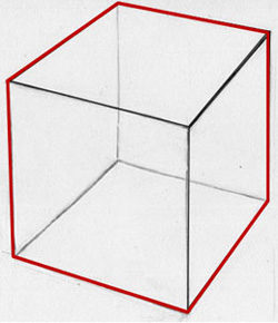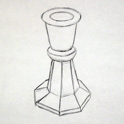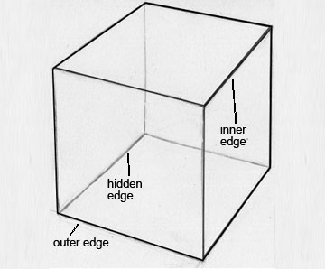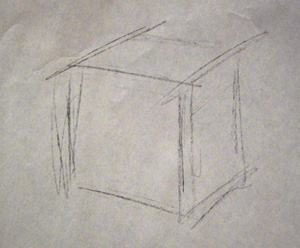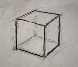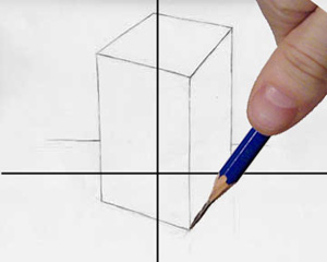 When drawing your basic forms in perspective, pay close attention to where objects meet and touch. Be careful your objects do not sit above or inside a surface that they are supposed to rest on.