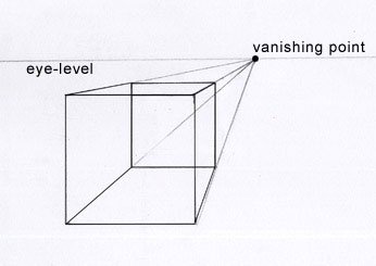 We will explore these methods in a moment. Don't forget to keep the basics of linear perspective in mind! If you want your drawings to look realistic, you must keep eye level in mind and be aware of foreshortening and convergence. Think about how many sides of an object you should be able to see from any one vantage point.