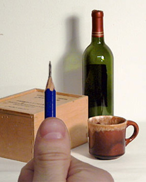 Now you can determine how tall the bottle is by using your pencil and thumb as a reference point. The distance between your thumb and the tip of a pencil creates a unit of measure.