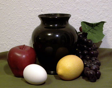 Think of positive and negative space as pieces in a jigsaw puzzle. When you are putting together the pieces of a puzzle, you don't think of any one piece as more important than another. What is important is how the pieces interconnect to make up the larger picture. Positive and negative space is similar. Let's look at the still life I set up with a few objects I had in my studio:
