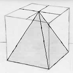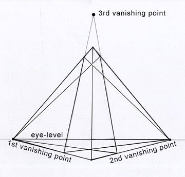 Pyramids are similar to cubes and cones. Begin with a geometric shape with three or four points, such as the base of a cube or a triangle. Then draw a point originating from the center of the base and draw it in a line perpendicular to the base of the object.