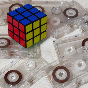 You can create dynamics in your composition by disrupting the pattern with a contrasting element or accent. Notice the accent created by the toy cube in this rhythmic sea of cassettes.