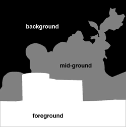 Be aware of the foreground, mid-ground, and background placement of your objects. If all of your objects occupy the same space, there isn't much room to create depth. However if we divide our objects into areas of foreground, mid-ground, and background we are able to create a greater sense of depth.