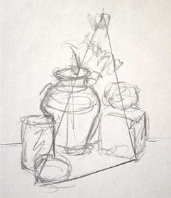 This will typically result in two sides of a triangle. You can use these quick guidelines to check the placement of your forms, as well as to provide a plumb line to compare angles. It quickly illustrates what space your drawing will take up on the page.