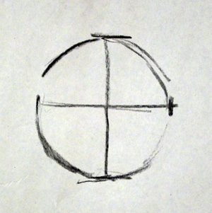 A sphere can be drawn using a similar method. First locate the outer edges of your subject.