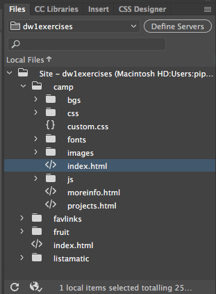 for Exercise Two. Move it into your dw1exercises folder. You don't need to define a new site for this project—you'll be using the same dw1exercises local site folder for the rest of the class.