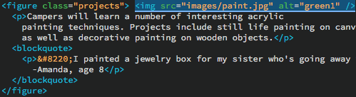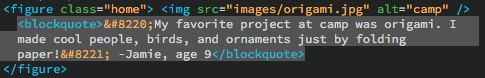 3. Notice the quote under the origami photo? Let's give it some special formatting. The quote is formatted in the HTML blockquote tag.