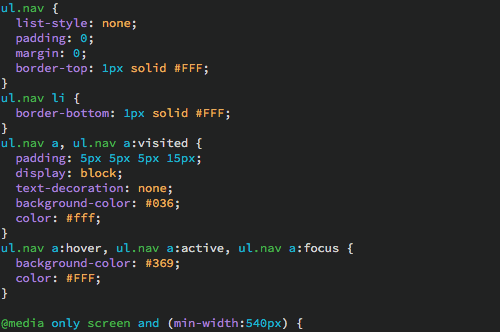We need two different navigation styles for the top nav. On large screens, the top-nav will be formatted as a horizontal list: