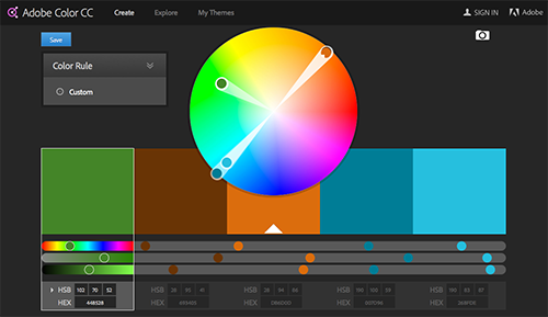 I went back to Adobe Color CC and selected the brown color swatch, then dragged the value slider under the color wheel to make it darker. After copying the new hexadecimal color code, I'm happy with the hue and contrast level. |