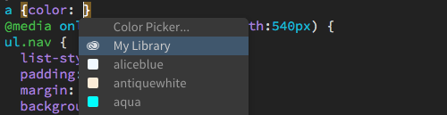 Browse to select a color swatch from your library. Choose a contrasting font-color so the links will light up on rollover.