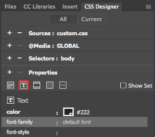 Choose custom.css - GLOBAL - body and take a look at the Type category: