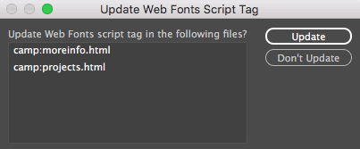 After adding an Adobe Edge Web Font, it is a good idea to save your changes. Go to File > Save All. If Dreamweaver asks you to update the Web Fonts script tag, click Update.