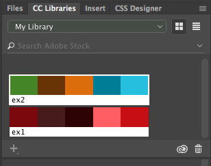 After saving your color theme, it will appear in your CC Libraries panel. If your panel is blank, quit Dreamweaver and restart.