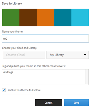 Click the blue Save button. Name your theme "ex2" and save to "My Library". Click Save.