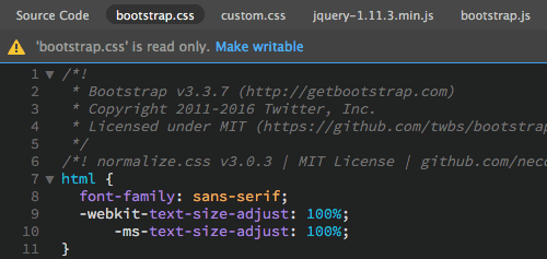 3. Toggle to bootstrap.css to make sure it is linked correctly.