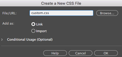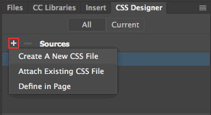 4. Toggle to custom.css to make sure it is also linked correctly. If you see an error warning you that the custom.css file is not on the local disk, open your CSS Designer panel and create a new CSS file.