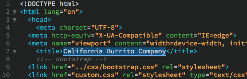 2. Switch to Code View and enter "California Burrito Company" as the document title.