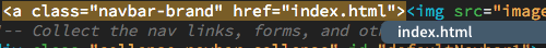 To finish up, set the logo image to link to the home page. Select the "#" inside the link tag.