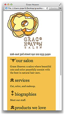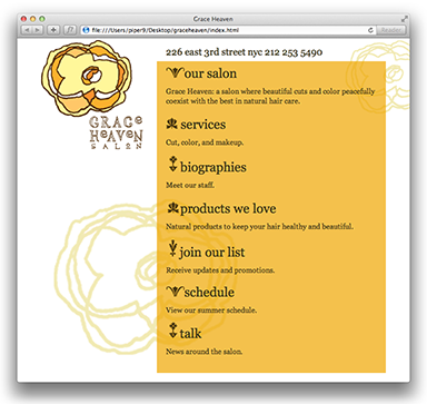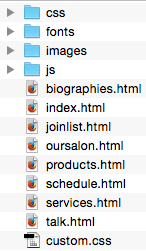 hair salon. Each web page is represented by an HTML document (biographies.html, index.html,