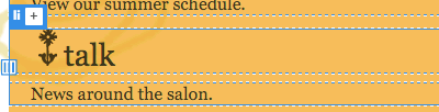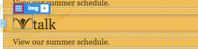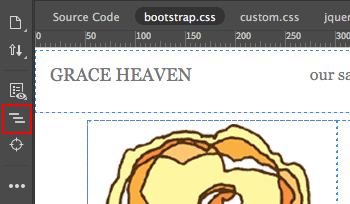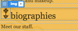 Toggle back to Live View. Select the ornamental flower next to the "biographies" heading by clicking it once. A blue tab will border the image, letting you know that the <img> tag is selected.