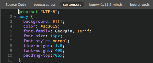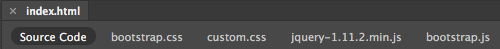 You will notice several items below the index.html tab: Source Code, bootstrap.css, custom.css, and jquery-1.11.2.min.js