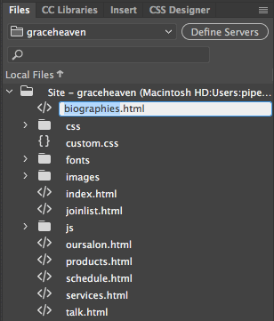 Select the Files panel, where you'll find the graceheaven folder. Expand this folder by clicking