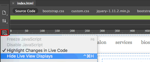 Page elements are outlined by dotted blue borders in Live View. For a seamless display, you can hide the borders by clicking the "Live View Options" icon in the Common toolbar on the left side of the interface. But keep them turned on for now!