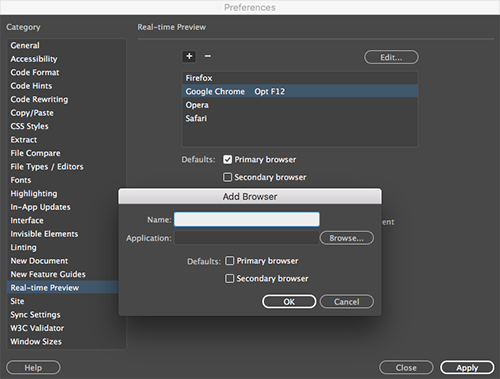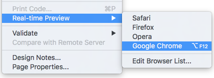 The next time you go to File > Real-time Preview, you can choose your browser directly.