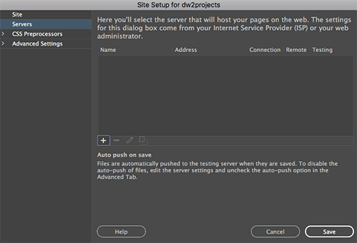 Click Save. You'll see a new entry in the Servers list in the Site Setup dialog. By default, "Remote" should be checked.