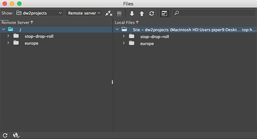 On the left, you'll see the remote files that you have posted online. The local files are on the right.