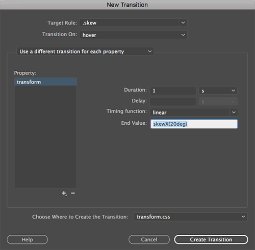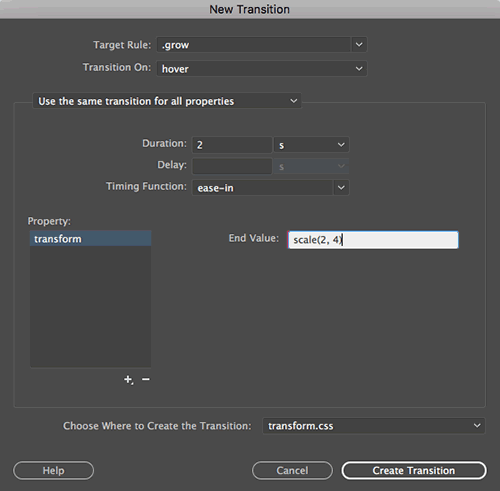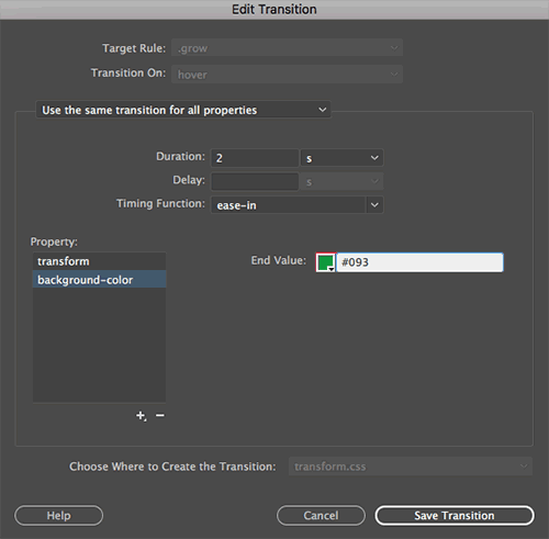 3. We are going to apply this transition to more than one property here, so choose "Use the same transition for all properties".