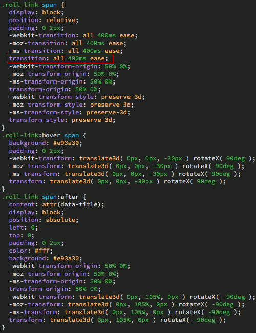 You'll notice that almost all the CSS properties are represented here. Properties like "font-family" cannot be transitioned, since it would be impossible to for the browser to determine the in-between states transitioning from one font to another.