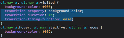 While the blue is nice, it's a little abrupt. For a different approach, mouse over the buttons below. Notice the difference? The background-color "eases" to blue more smoothly: