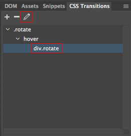 Toggle back to Live View. Select div.rotate in the CSS Transitions panel, then click the pencil icon to edit.