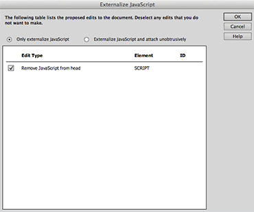 mouseouts, clicks and double-clicks. Dreamweaver will choose an event