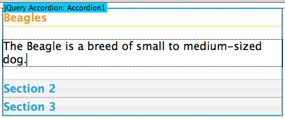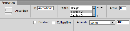 Select the accordion tab again, then choose Section 2 in the Properties inspector.