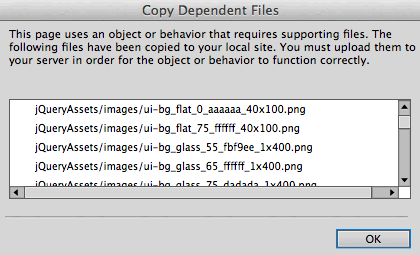 Go to File > Save. A dialog will pop up asking you to copy the dependent files needed to build the accordion. This includes JavaScript files (.js), CSS files, and several PNG images. Click OK.