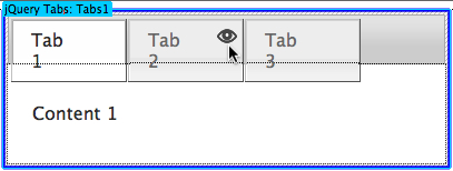 To insert content, hover your mouse over a tab and click the eye icon that appears. Type a new label and insert content into the panel below.