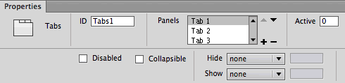 Using the Properties Inspector, you can add panels, subtract panels, and choose different animated effects when tabbed panels are hidden or shown.