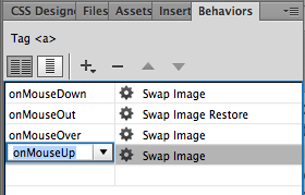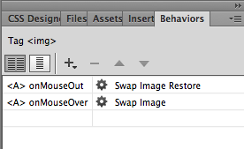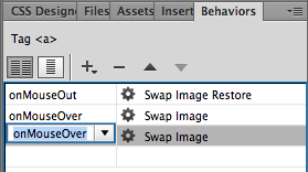 Your new swap will appear below your original two swaps (the "on" and "off") in your Behaviors panel. But now there's a conflict: two different images have an onMouseOver state!