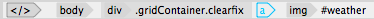 After you've inserted your basic image swap, select your "Today's Weather" image, then click the <a> link tag surrounding the image using the Tag selector in the lower-left corner of the Document window.