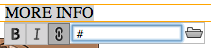 To begin, you'll need a dummy link. Switch to Live View. Double-click to edit "MORE INFO", then click and drag to highlight the text. Type a pound sign (#) in the Link field.
