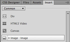 Open the Insert panel and choose the Common category. Click to insert an Image. Browse to select the sizing.jpg from the jquery-dialog image folder.