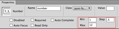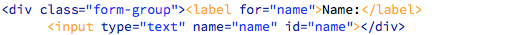 Toggle to Code View to apply the Bootstrap formatting. Select the first label and input field: