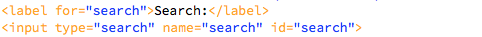 The label includes a "for" attribute. This lets the browser know that the label is "for" a particular input field. Using the "for" attributes is very important if you want to design an accessible form. Otherwise, the screen reader will have no way of knowing which input field relates to which label.