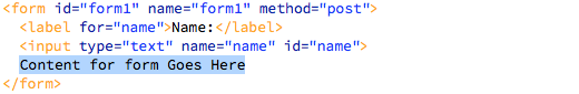 Before we move on, select the "Content for form Goes Here" filler text and hit your Delete key.