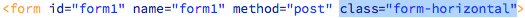 Horizontal forms require some extra formatting. First of all, you need to apply a class of "form-horizontal" to the form tag.