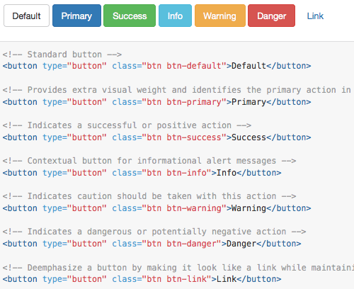 Bootstrap also gives you options for modifying the size of the buttons. If you want your button to be larger than average, apply a class of ".btn-lg". For a smaller button, apply a class of ".btn-sm".