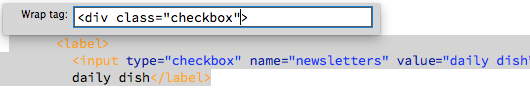 Click the "Wrap Tag" icon in the left coding toolbar or hit Command-T (the keyboard shortcut).