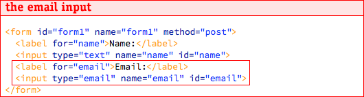 Email input fields come with a name, ID, and label of "email", so you don't have to make any changes. Cool!